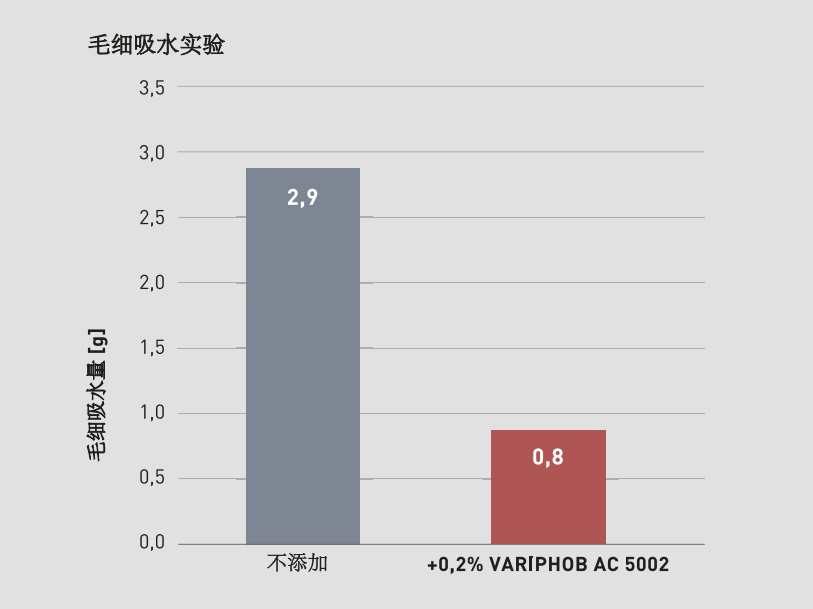 AC 5002 作為粉末狀憎水憎水劑,可在基材固化后表面形成憎水保護(hù),能用于水泥基礦物為原料的干混砂漿體系,阻止材料中毛細(xì)管對(duì)水的吸收,大大降低基材的吸水率,提高優(yōu)異的憎水性能;可應(yīng)用在防水砂漿,膩?zhàn)?,填縫劑,裝飾砂漿等場(chǎng)景;
